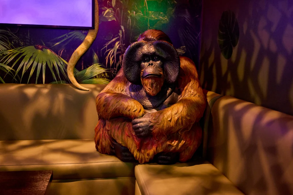 Un décor sombre et habité… prenez votre photo souvenir avec Redy notre star Orang Outan.